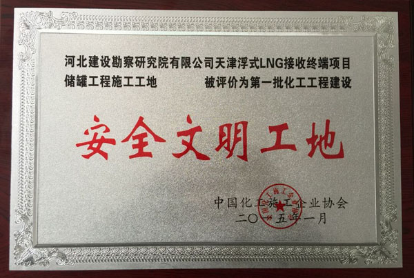 近日,我公司天津浮式LNG接收終端項目儲罐工程施工工地被中國化工施工企業協會評為安全文明工地。