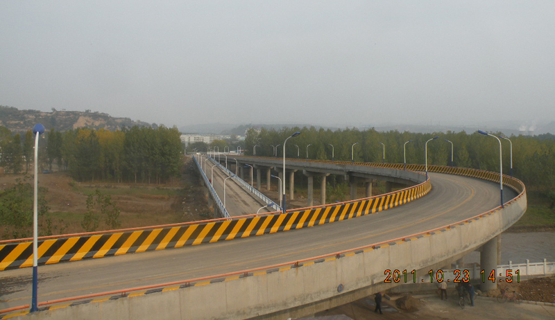 國電霍州發電廠跨汾河公路大橋東接國道108線(霍侯一級公路),西連電廠運煤公路,東接口處南有霍州礦務局木材加工廠,北有個體汽車修理廠,居民較少。向西跨越汾河進入電廠廠區后要上跨電廠主要出入道路。橋梁分左、右幅:左幅主要承擔電廠職工的生產、生活用車通行;右幅主要承擔電廠運煤、運渣等車輛通行。終點要與國道108線(霍侯一級公路)相連接,接點位置位于國道108線K826+160處。