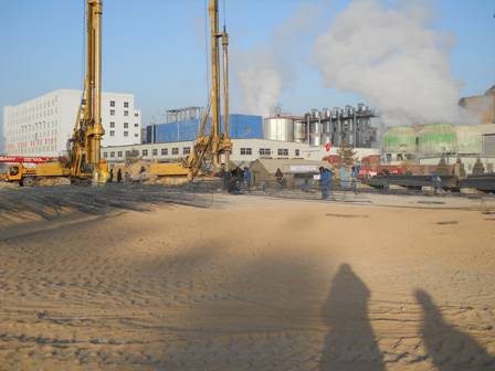 該工程施工種類較多,主要包括旋挖鉆孔灌注樁、灰土擠密樁和商品混凝土。我公司共完成旋挖鉆孔灌注樁樁基工程共完成1604根,施工了樁徑800mm的樁基667根,其中旋挖擴底的114根,后壓漿施工的297根;樁徑1000mm的樁基937根,其中旋挖擴底的58根,后壓漿施工的779根,設計混凝土方量20614.24方,樁身混凝土強度等級為C25和C30。樁孔直徑Φ400mm,樁長6.0m,樁距1m,正方形布置的灰土擠密樁共完成2312根,樁孔直徑Φ400mm,完成延米15028m。