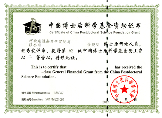 根據(jù)《中國(guó)博士后科學(xué)基金面上資助實(shí)施辦法》,公司在站博士后管曉明的《非飽和地層盾構(gòu)隧道開挖面穩(wěn)定性與控制研究》,榮獲中國(guó)博士后科學(xué)基金第62批面上二等資助5萬元。