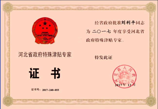 經公司推薦申報、市人力資源和社會保障局初評、省人力資源和社會保障廳組織專家綜合評委會評審,報省委人才工作領導小組審核、省政府批準,公司副總經理劉利平榮獲省政府特殊津貼專家稱號。