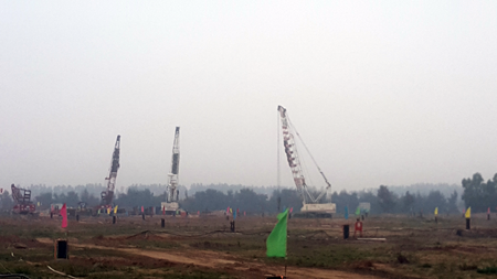 受業(yè)主委托,我單位分別承擔(dān)了2#區(qū)Ⅵ標(biāo)段、3#區(qū)Ⅰ-1標(biāo)段地基預(yù)處理工程及全場區(qū)試樁工程。地基預(yù)處理工程工作內(nèi)容為降水加強(qiáng)夯,降水井共完成634口,強(qiáng)夯施工完成約43.7萬㎡。試樁工程共完成8個試樁區(qū),試樁樁型包括預(yù)應(yīng)力高強(qiáng)混凝土管樁、機(jī)械連接先張法預(yù)應(yīng)力竹節(jié)樁、預(yù)制方樁、灌注樁等。