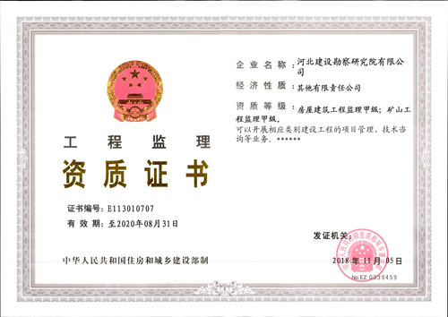 我公司于2018年11月5日取得了礦山工程監理甲級資質證書,可承擔: