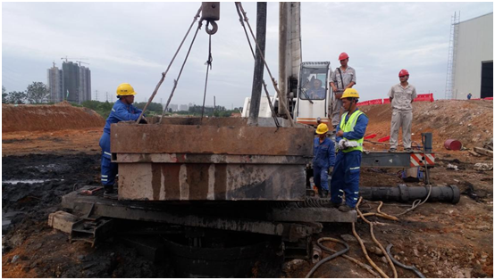 本工程2018年8月22日開始施工,于2019年3月15日竣工,φ1800mm鉆孔灌注樁合同工作量為1600m,實(shí)際完成工作量為1252m;φ1600mm鉆孔灌注樁合同工作量為1460m,實(shí)際完成工作量為704m;φ1500mm鉆孔灌注樁合同工作量為520m,實(shí)際完成工作量為484m;φ1200mm鉆孔灌注樁合同工作量為1180m,實(shí)際完成工作量為764m。混凝土強(qiáng)度為C35,混凝土方量5955m³。投入旋挖鉆機(jī)2臺(tái)套,沖擊鉆機(jī)2臺(tái)套,汽車鉆機(jī)2臺(tái)套,吊車2臺(tái),挖掘機(jī)1臺(tái)。