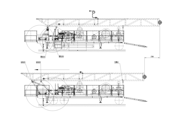 該型鉆機(jī)鉆塔通過(guò)液壓起塔油缸可整體橫向移動(dòng)1760mm,使得鉆機(jī)在移動(dòng)和運(yùn)輸狀態(tài)時(shí)布局均勻,成功解決了拖車(chē)鉆機(jī)鉆塔“前短后長(zhǎng)”的弊病。該型水井鉆機(jī)轉(zhuǎn)盤(pán)使用∅670mm通徑轉(zhuǎn)盤(pán),轉(zhuǎn)盤(pán)輸入軸連接盤(pán)按JN162萬(wàn)向軸連接尺寸加工,帶液壓活門(mén)機(jī)構(gòu),底盤(pán)兩側(cè)安裝柵格網(wǎng)底板。井口活門(mén)采用液壓驅(qū)動(dòng),在井口活門(mén)上安裝兩個(gè)開(kāi)合油缸,推動(dòng)井口活門(mén)開(kāi)合,有效降低了操作者的勞動(dòng)強(qiáng)度,使用方便可靠。