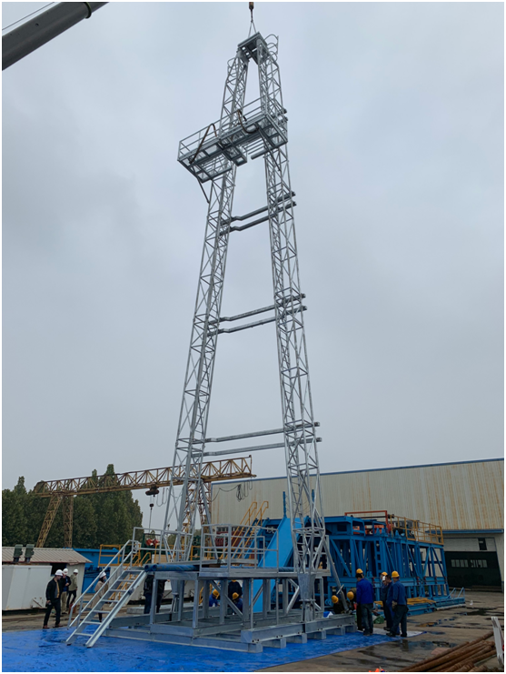 河北建勘鉆探設備有限公司為日本金泉株式會社研制的A25-50/1.5(RESORT 21HD)熱鍍鋅鉆塔,已經全部安裝調試完成,2019年10月17日,日本內田金泉株式會社的總經理內田米房一行來到河北建勘鉆探設備有限公司,對銀光閃閃的鉆塔外觀質量、安裝過程、基本參數進行了檢查驗收,對鉆塔設計制造綜合技術指標評價滿意,順利通過日方驗收。