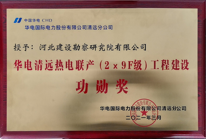 我公司榮獲華電清遠熱電聯產(2×9F級)工程建設功勛獎