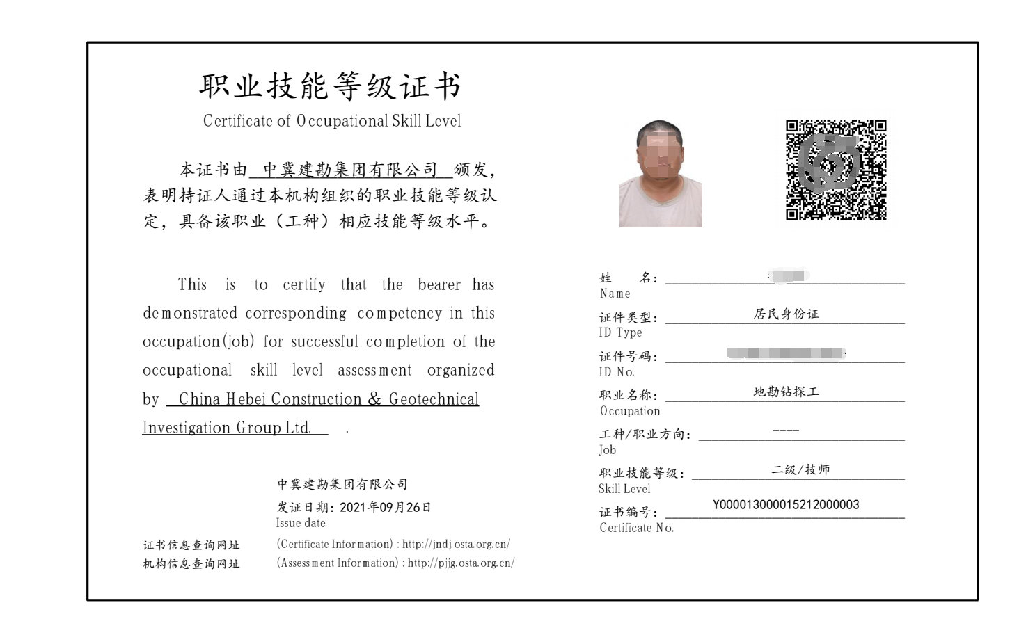 根據《國家職業技能標準》,公司按照取得的職業技能等級認定范圍,結合公司制度及內部認定的工人技術等級情況,制定了《中冀建勘集團有限公司職業技能等級套改方案》,組織開展了334名技術工人職業技能等級認定工作,取得了職業技能等級證書。同時,根據政府相關政策,申請取得了相應的補助資金。