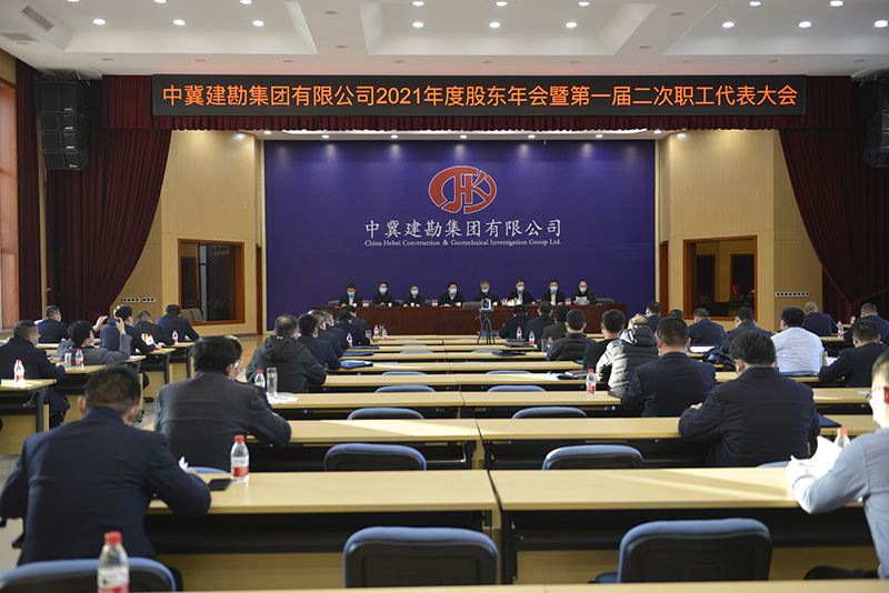 1月17-18日,中冀建勘集團有限公司2021年度股東年會暨第一屆二次職工代表大會勝利召開。這次會議是我們以優異成績為建黨百年獻禮,以奮進姿態翻開“中冀建勘”發展新篇章的重要歷史節點,召開的一次具有重要意義的會議。會議采用線上、線下相結合的形式,分主、分會場同時召開,會議氛圍熱烈而融洽。通過與會代表的共同努力,我們召開了一次統一思想、振奮精神、鼓舞干勁的思想動員會,一次求真務實、凝心聚力、共謀發展的工作部署會,一次聚焦目標、擔當作為、篤行致遠的戰略推進會。