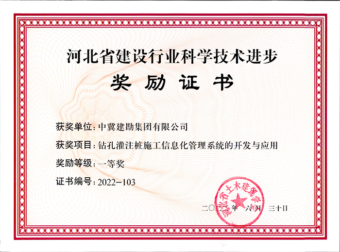 一等獎1項:鉆孔灌注樁施工信息化管理系統(tǒng)的開發(fā)與應(yīng)用