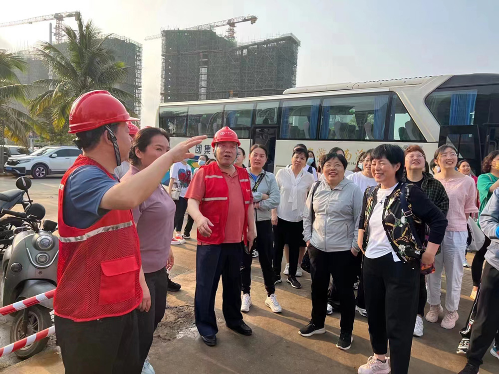 2023年3月11日上午,海南之旅的第一站就是中冀建勘辦公樓施工現場。新辦公大樓計劃6月份交付使用,這標志著中冀建勘集團將在自貿港以嶄新的面貌繼續揚帆遠航。在陳家勇主任的陪同講解下,大家興致勃勃的參觀了辦公樓的外觀、庭院、室內等部位。參觀過程中大家紛紛拿起手機拍照留念,臉上洋溢著幸福的微笑,對公司未來的發展充滿信心。
