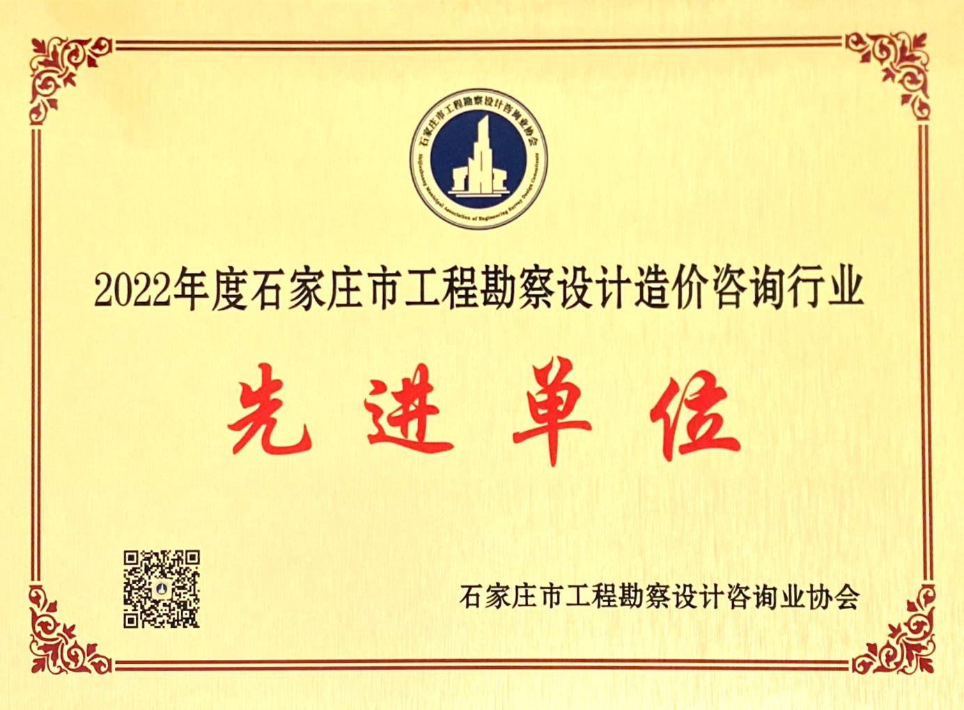 近日,石家莊市工程勘察設計咨詢業(yè)協(xié)會下發(fā)《關于表彰2022年石家莊市工程勘察設計造價咨詢行業(yè)先進單位和先進個人的通知》(石設協(xié)字【2023】2號),我公司被授予“2022年石家莊市工程勘察設計造價咨詢行業(yè)先進單位”稱號,韓立君同志、商衛(wèi)東同志被授予“2022年石家莊市工程勘察設計造價咨詢行業(yè)先進個人”稱號。