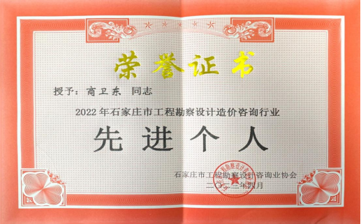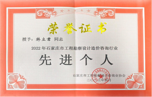 我公司及兩名同志榮獲石家莊市工程勘察設計咨詢業(yè)協(xié)會表彰