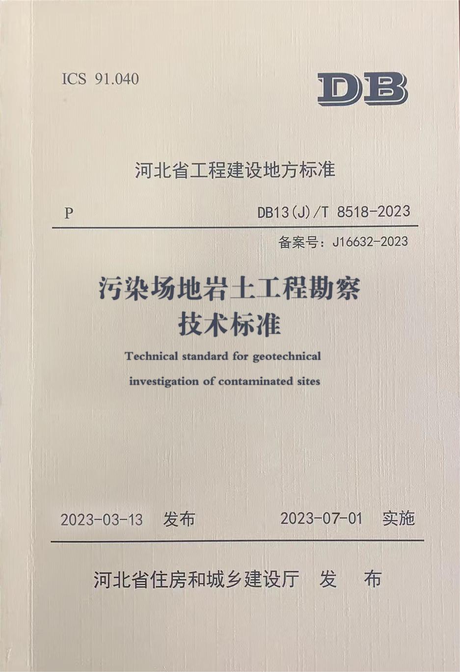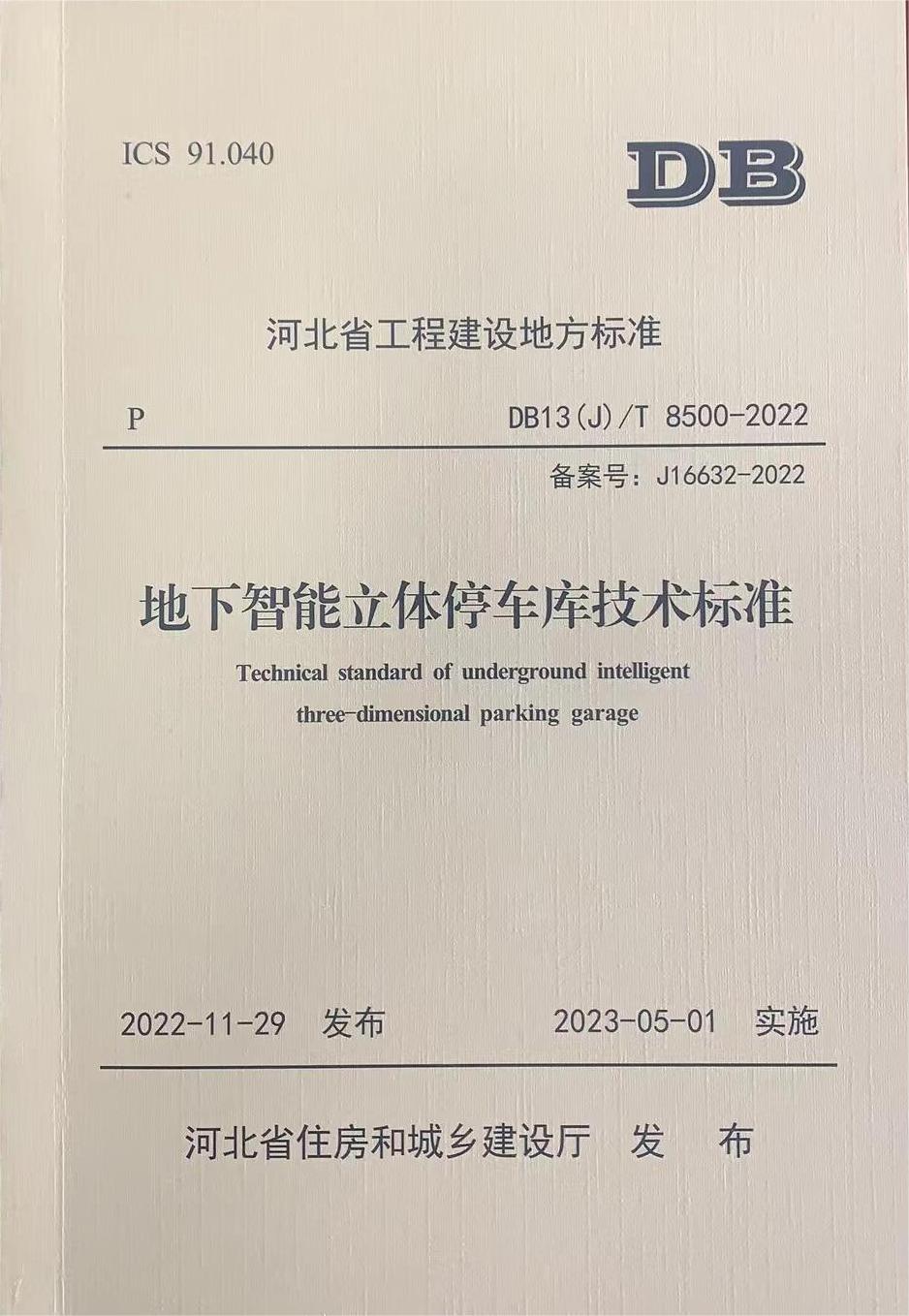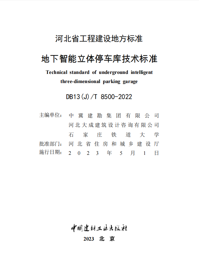 近日,我公司主編的河北省工程建設地方標準《地下智能立體停車庫技術標準》(DB13(J)/T 8500-2022)、《污染場地巖土工程勘察技術標準》(DB13(J)/T 8518-2023)由河北省住房和城鄉建設廳正式發布,并印刷出版發行,分別將自2023年5月1日和7月1日起實施。