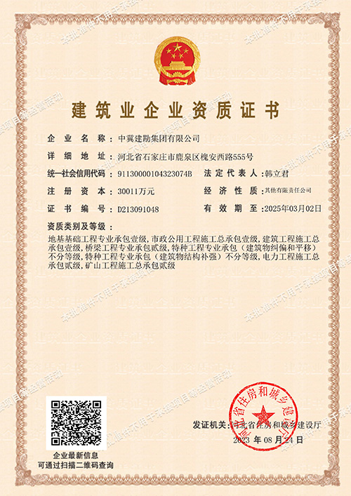 中冀建勘集團(海南)有限公司喜獲建筑業企業貳級資質證書