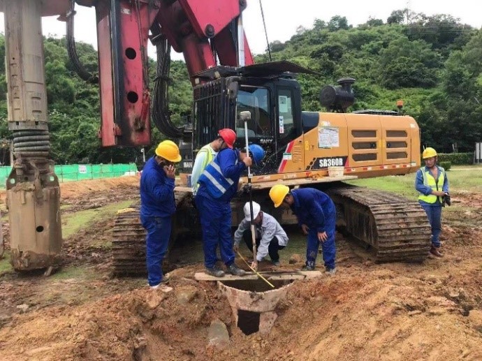 在進(jìn)行GIS區(qū)域樁基施工過(guò)程中,發(fā)現(xiàn)該施工區(qū)域的地下管線走向及位置與建設(shè)單位提供的竣工圖不符。項(xiàng)目部積極與設(shè)計(jì)、監(jiān)理、業(yè)主等單位協(xié)調(diào)溝通,采用人工挖探坑、金屬探測(cè)儀等方式探明地下管線,在保證施工進(jìn)度的同時(shí)也避免了因地下管線問(wèn)題造成的施工事故。