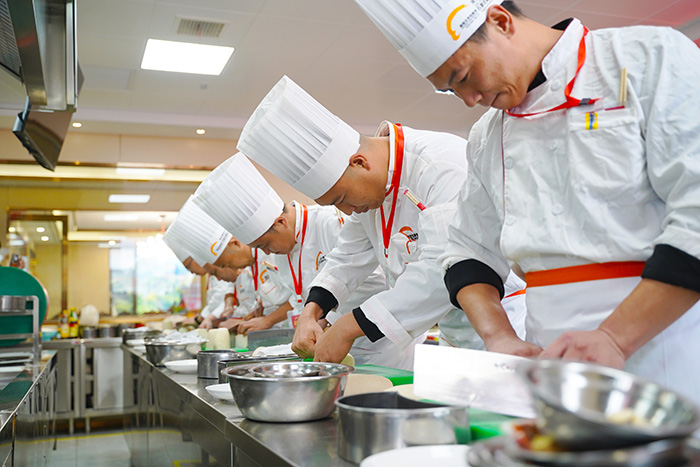 此次比武大賽共分為操作技能(基本刀功、指定菜品和自選菜品烹飪)和理論考試兩個項目,全面考驗炊事員們的專業技能。