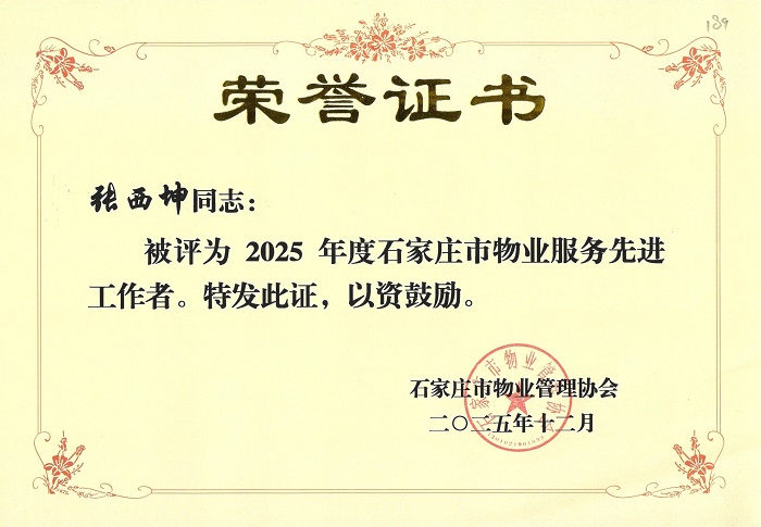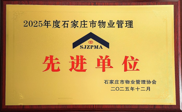我集團所屬物業服務公司榮獲“2025年度石家莊市物業管理先進單位”,張西坤同志榮獲“2025年度石家莊市物業服務先進工作者”榮譽稱號。